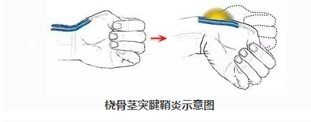 桡骨茎突腱鞘炎,在腕部的桡侧(即大拇指一侧)有一个骨性隆起,称为桡骨茎突。其上有一个腱鞘,鞘内有两根肌腱(拇短伸肌腱与拇长展肌腱)通过。由于拇指和腕部活动较多,该处腱鞘也常发炎;即称为桡骨茎突腱鞘炎。发病后患者感到: