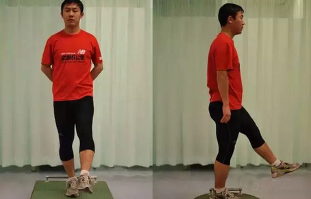 站在专用平衡板、平衡软踏(网上及体育用品卖场可以买到)或自制简易平衡垫上,腿伸直,挺胸抬头,重心尽量往上提,用一条腿的力量控制身体平衡,3-5分钟每次,休息30秒,共做2-3次每组,1-2组每天。